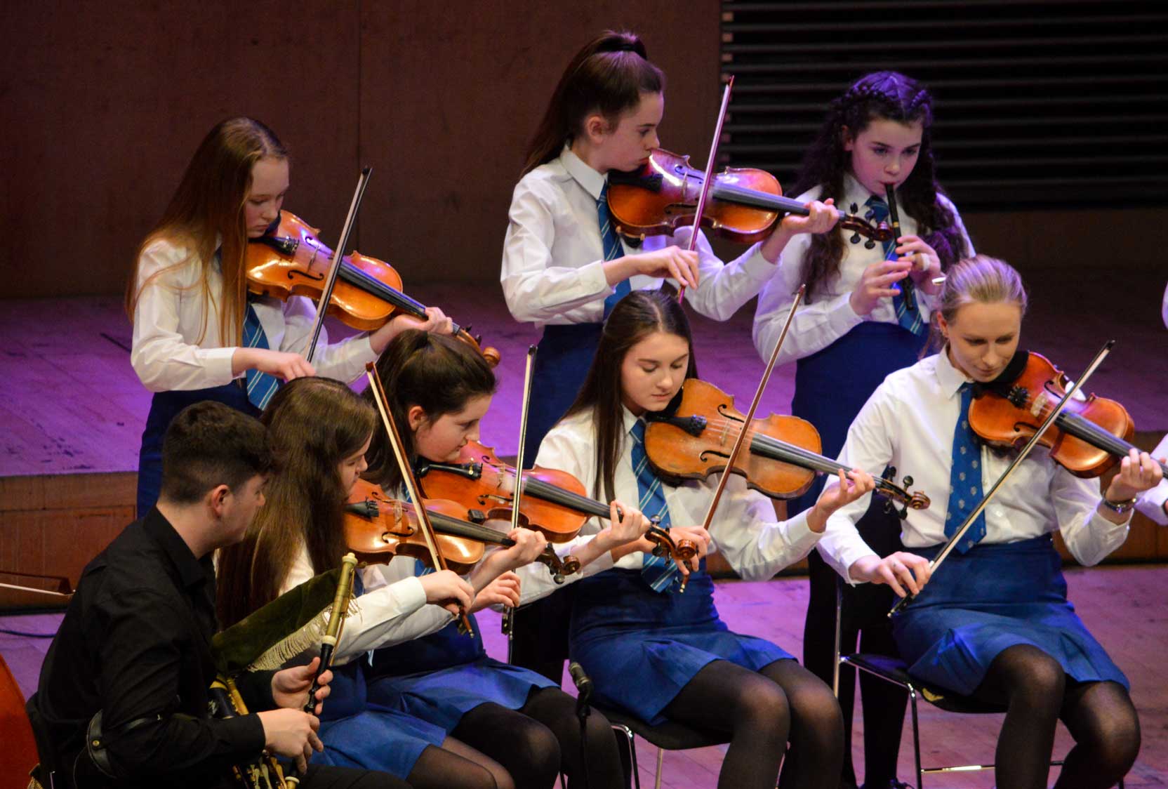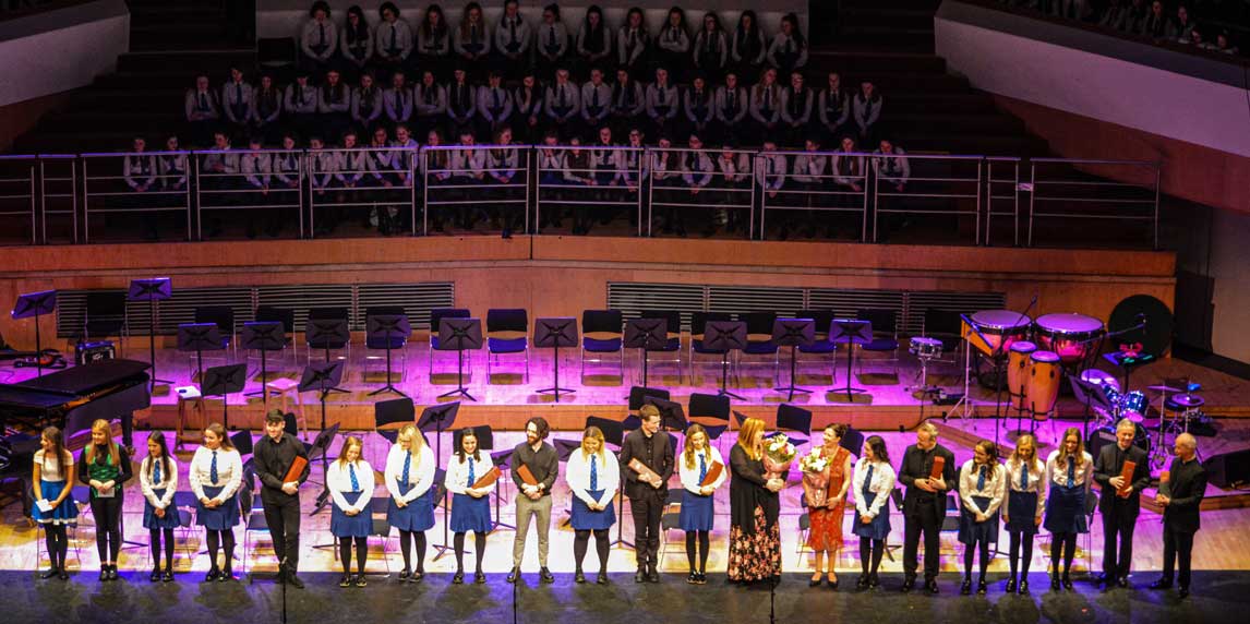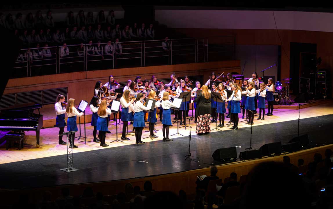 Each year the department undertakes a full and challenging programme of recitals and concerts as well as performances at parents’ evenings, open nights and liturgical functions. The major event in our calendar is the Annual Concert which, this year will take place in the Ulster hall. This allows all of our young performers an outstanding opportunity to perform in a prestigious setting to an audience of nearly a thousand people. You can see one of our recent concerts illustrated above.