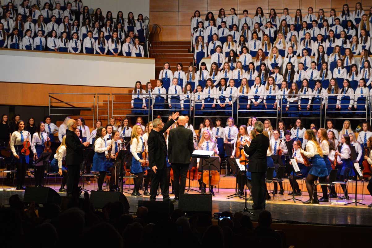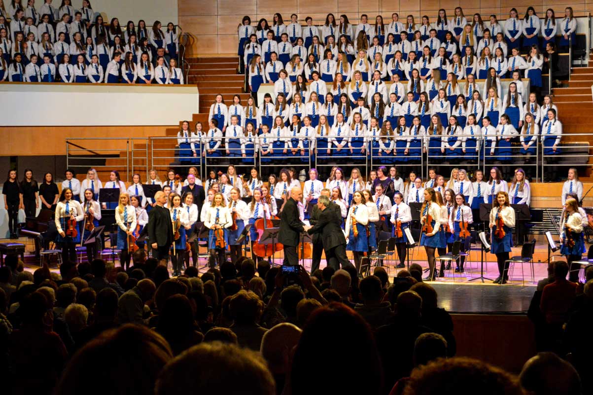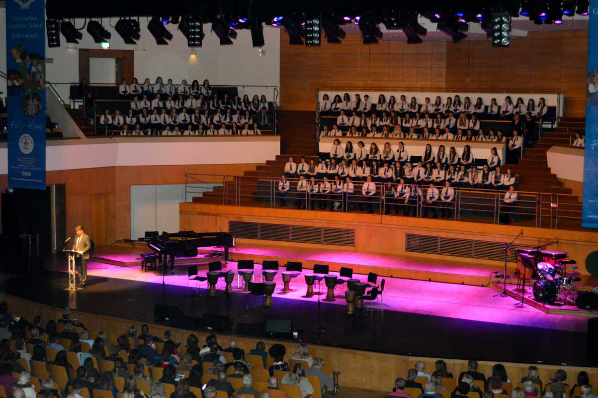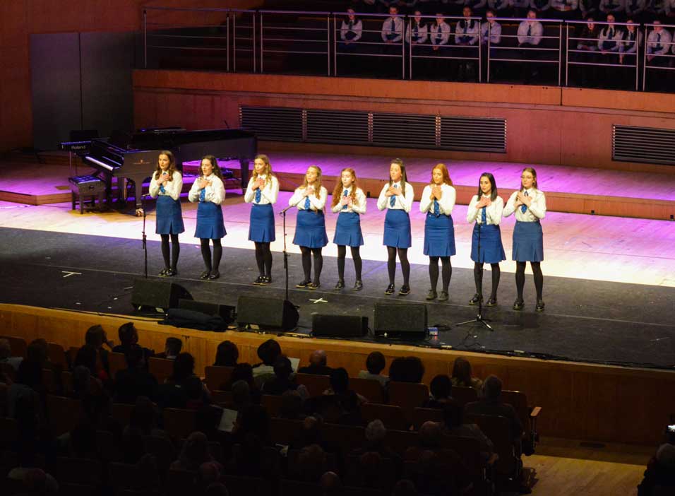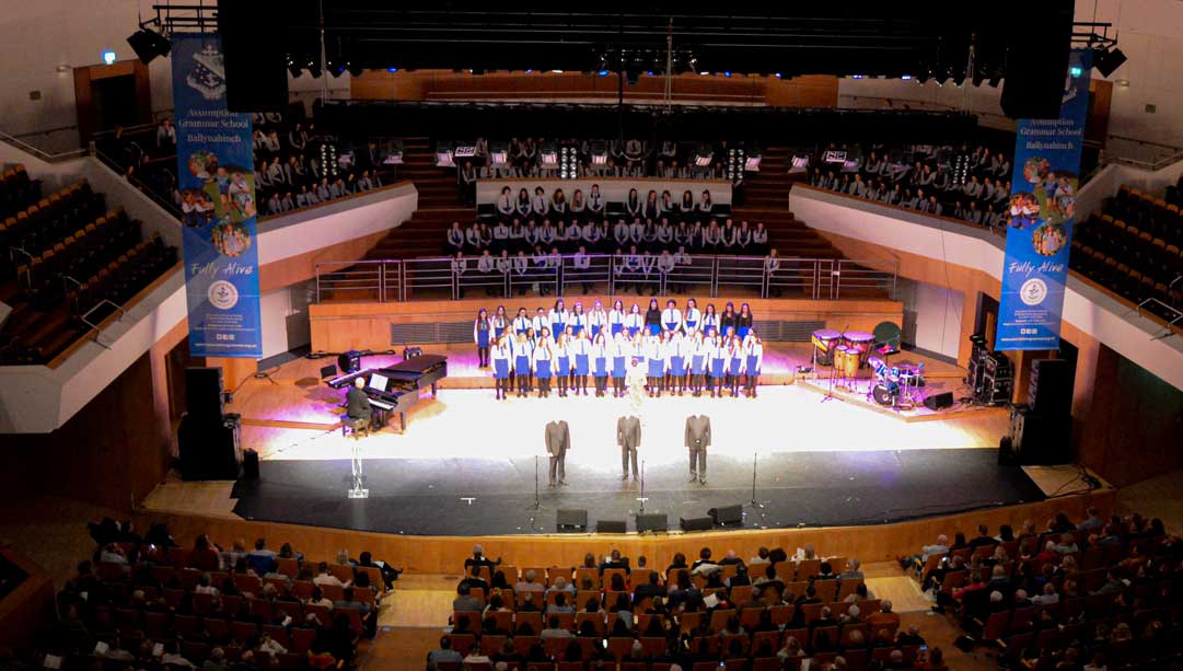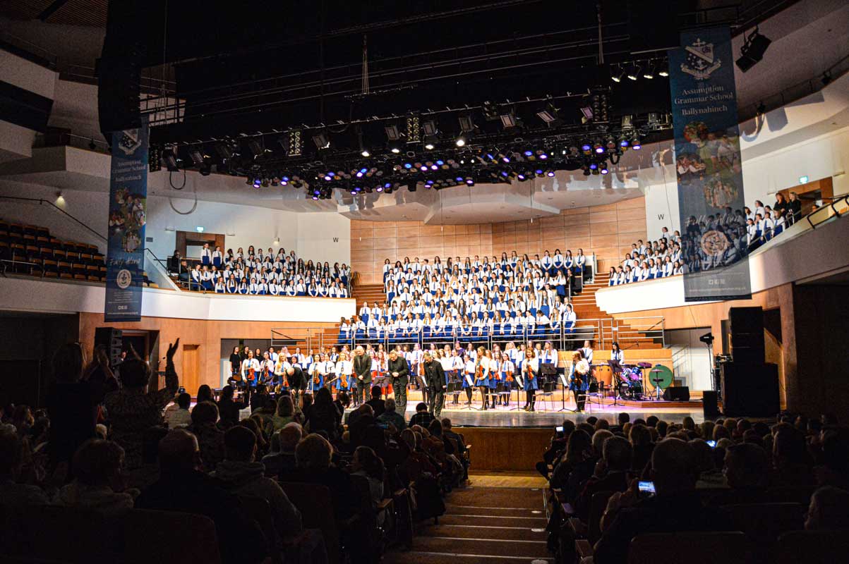 On Sunday 9th February, the audience in the Waterfront Hall in Belfast were treated to another feast of music from the girls of Assumption Grammar School in Ballynahinch, Co. Down. This year the girls welcomed to the stage as special guests the widely-acclaimed vocal ensemble ‘The Priests’ who have delighted audiences around the world and presented music from their own highly successful repertoire as well as performing alongside choirs from the school in what proved to be a memorable experience for music enthusiasts of all ages.