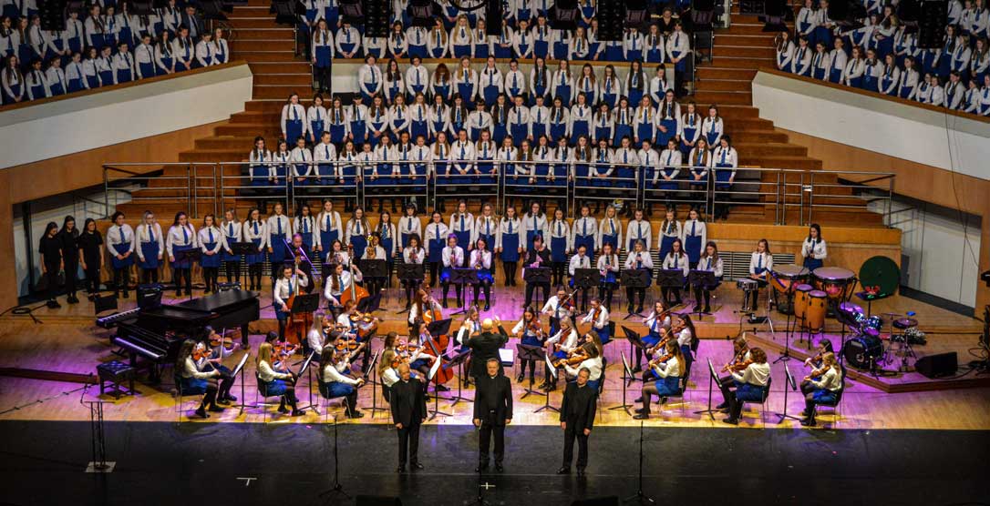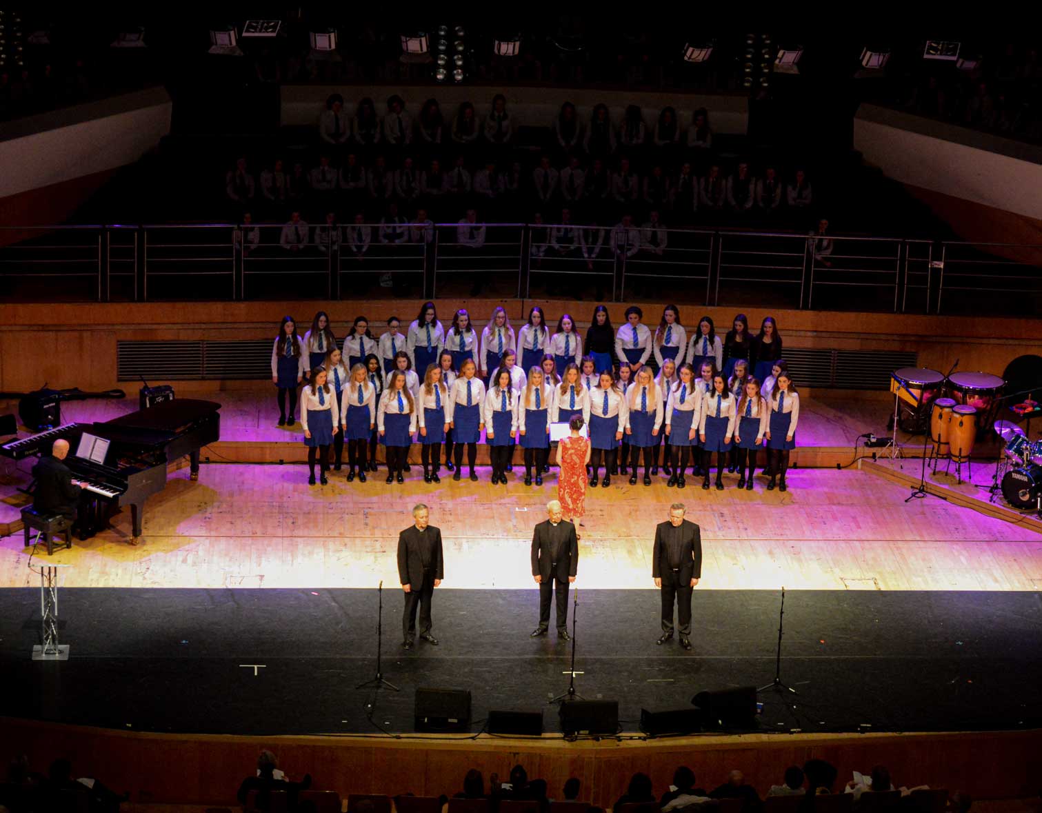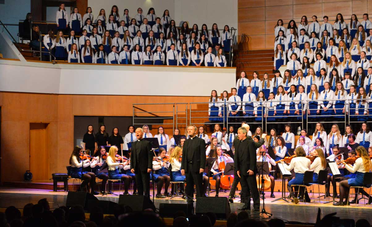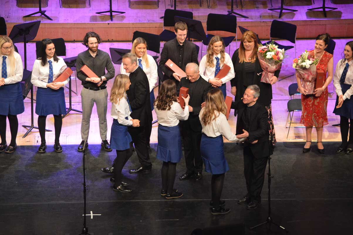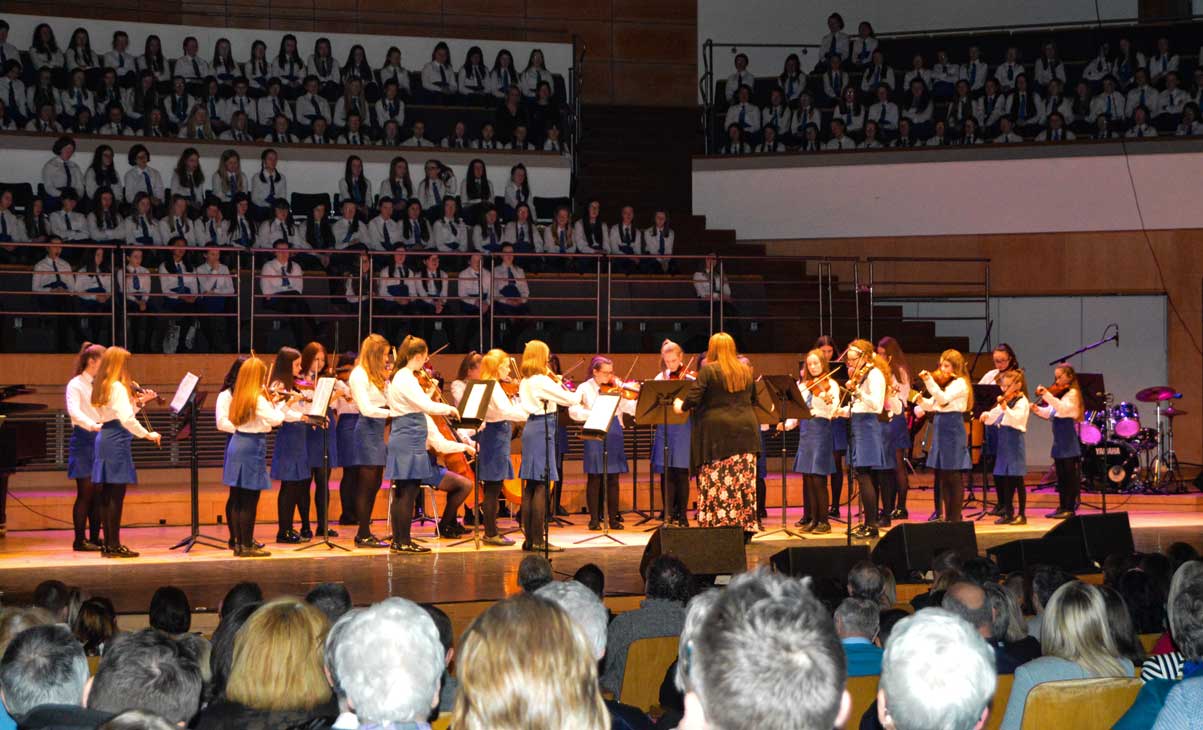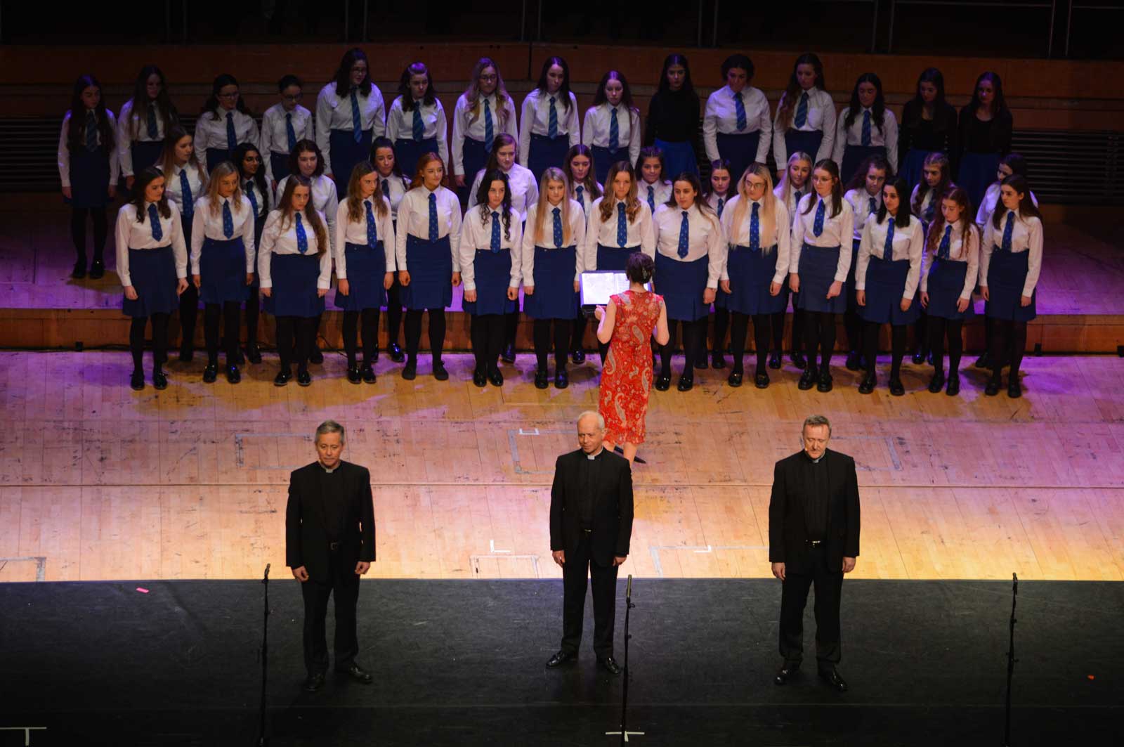 On Sunday 9th February, the audience in the Waterfront Hall in Belfast were treated to another feast of music from the girls of Assumption Grammar School in Ballynahinch, Co. Down. This year the girls welcomed to the stage as special guests the widely-acclaimed vocal ensemble ‘The Priests’ who have delighted audiences around the world and presented music from their own highly successful repertoire as well as performing alongside choirs from the school in what proved to be a memorable experience for music enthusiasts of all ages.