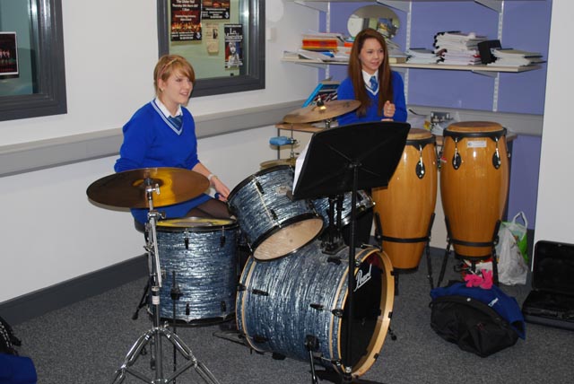 In addition, students may decide to take up a musical instrument and to cater for this we have a large and growing peripatetic staff who provide individual and group tuition in voice, strings, woodwind, brass, percussion, piano and aural training. Students are prepared for graded examinations through Trinity College in both practical and theory. They may also take exams in Traditional Music through the London College of Music and Drums through the ‘Rockschool’ system.