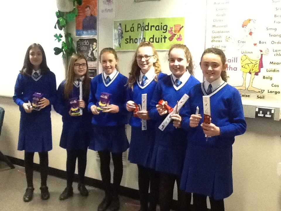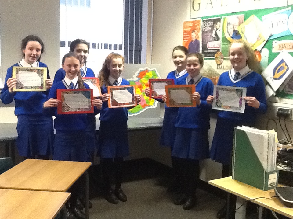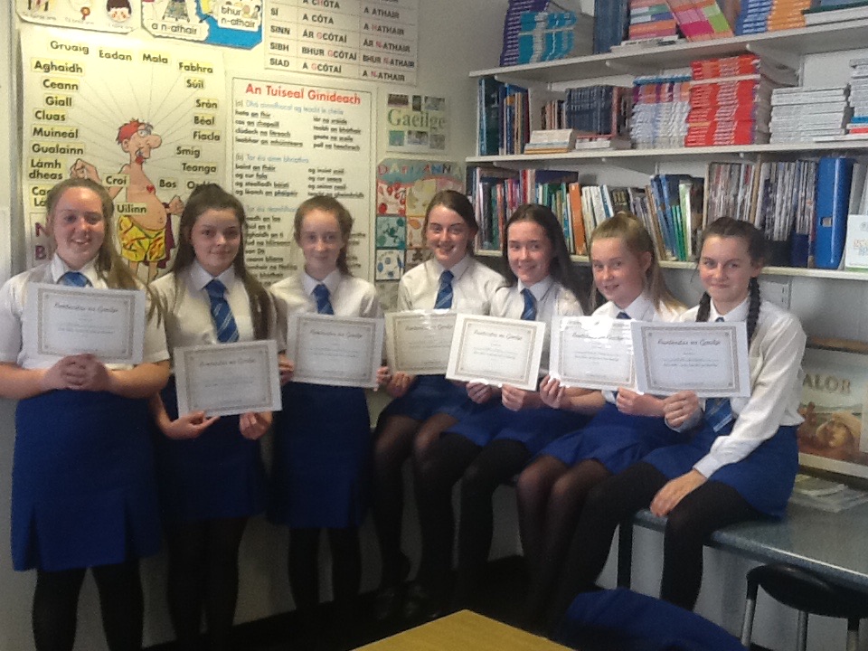 · Speaking Awards – ‘Cuplá Focal’ award (Year 8), ‘Bunteastas’ certificate (Year 9) & ‘An Fáinne Airgid’ (Year 10).