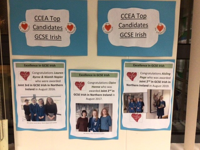 Students from an Irish Medium Primary schooling background have the opportunity to prepare for and take GCSE Irish at the end of Year 10.